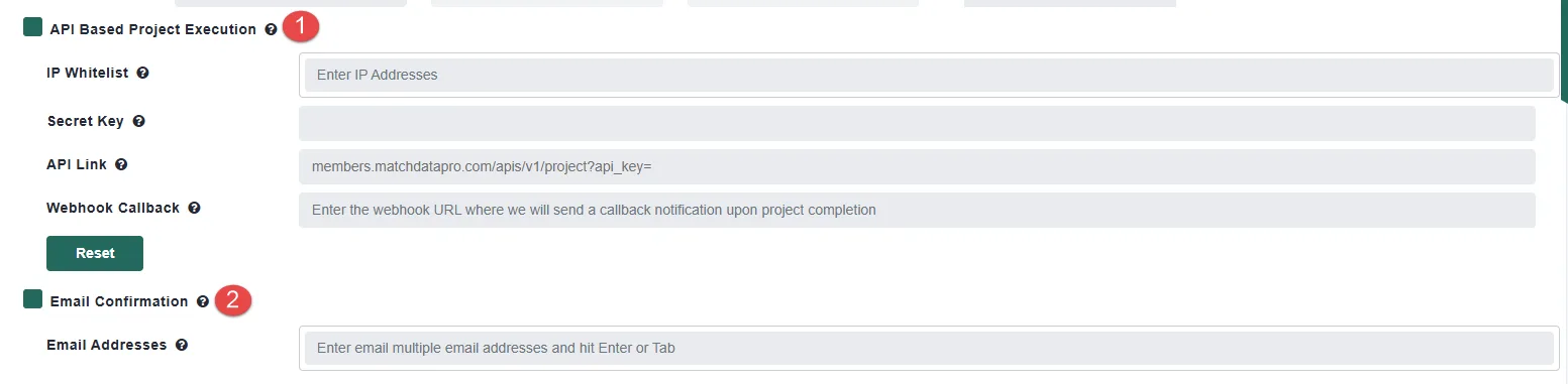 Match Data Pro allows you to automate the execution of pre-configured projects using built-in automation triggers. To access these settings, navigate to the Configuration tab and open the Automation Options panel within your project.