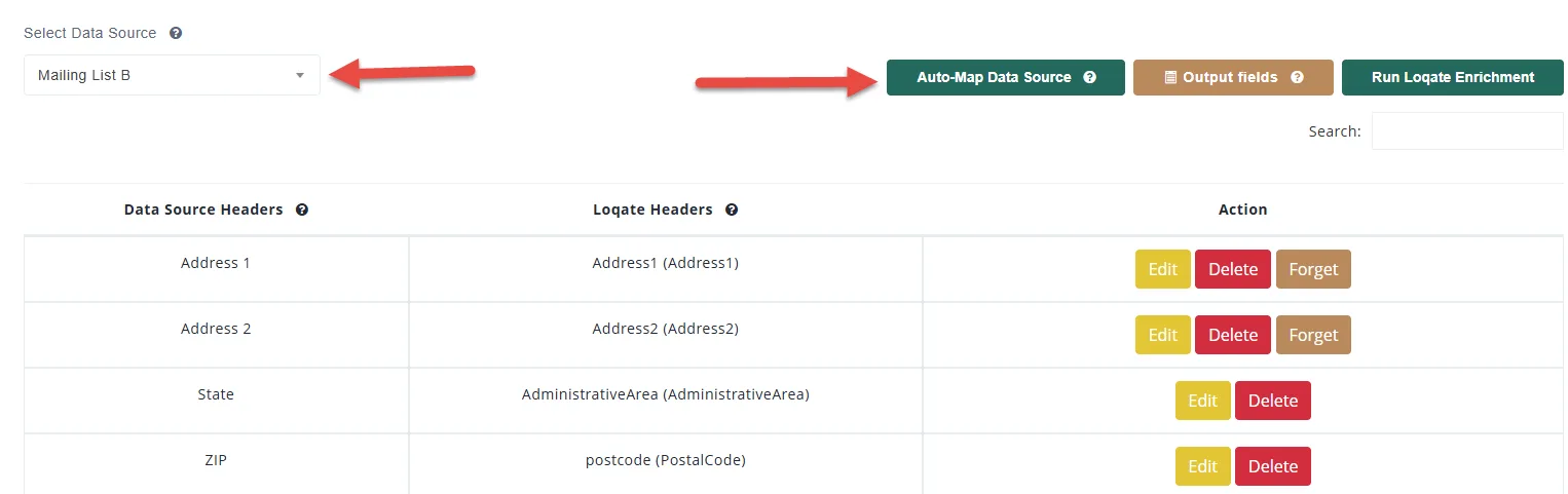 • Click the Auto-Map button to map your data source to the Loqate fields