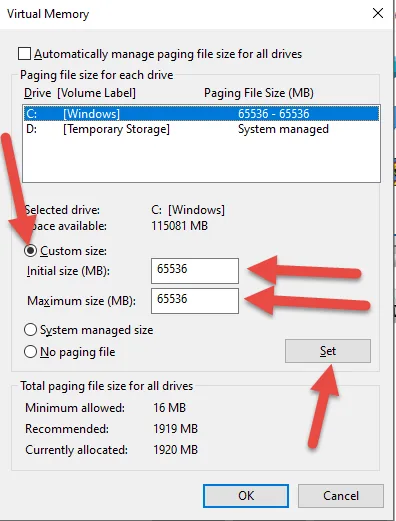• Make the Initial size and Maximum size the same