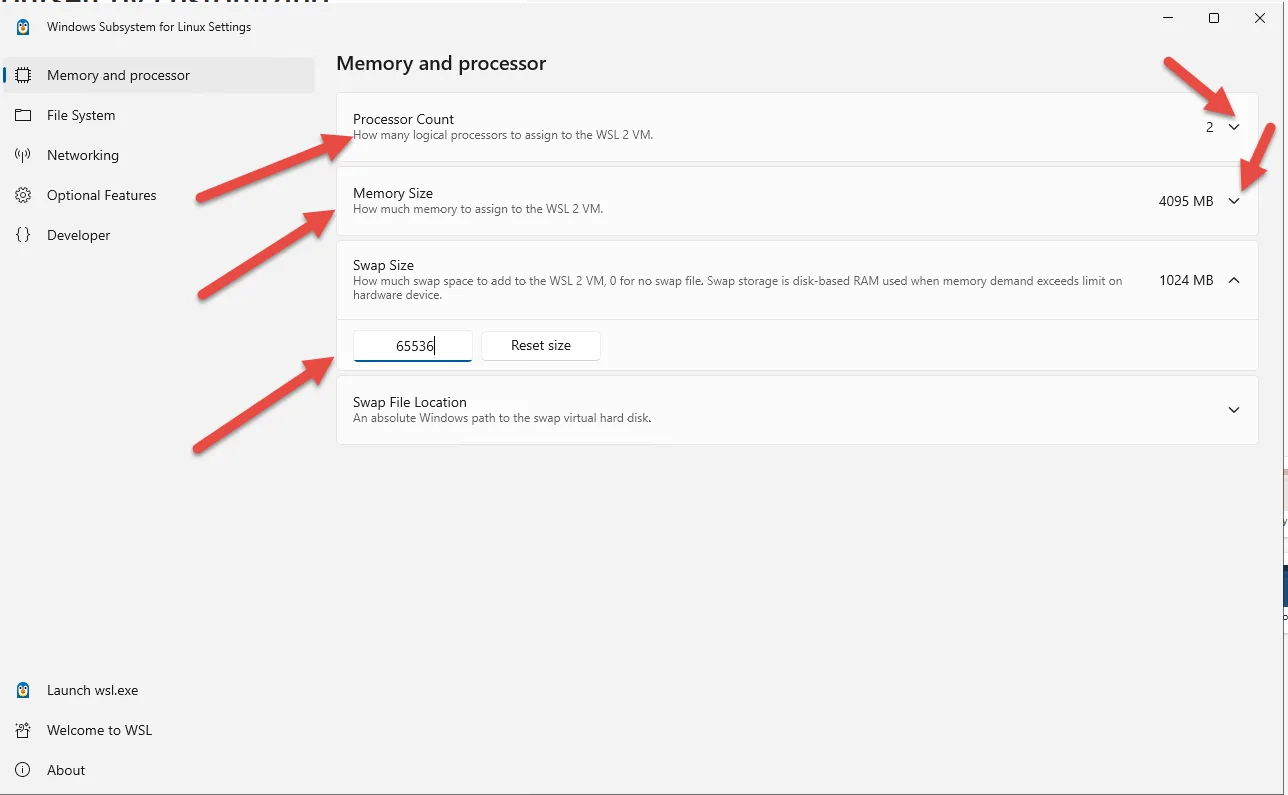 WSL Settings Processor Memory