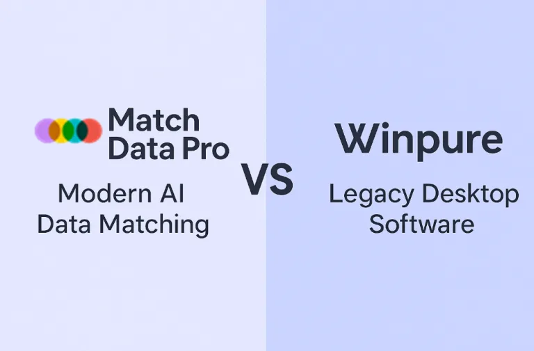When choosing a data matching solution, the difference between legacy software and modern AI-driven platforms is huge. WinPure has been around for years as a traditional desktop data cleansing tool — but today’s data problems require something faster, smarter, and built for automation.
